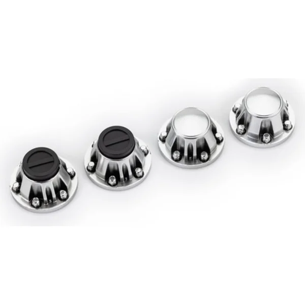 Ensemble de quatre caches de moyeu de roue chromés semi-mat. Destiné à être monté sur la pièce 8255A.