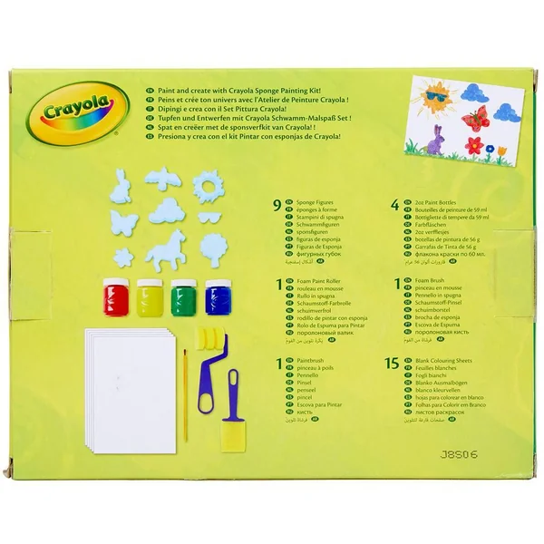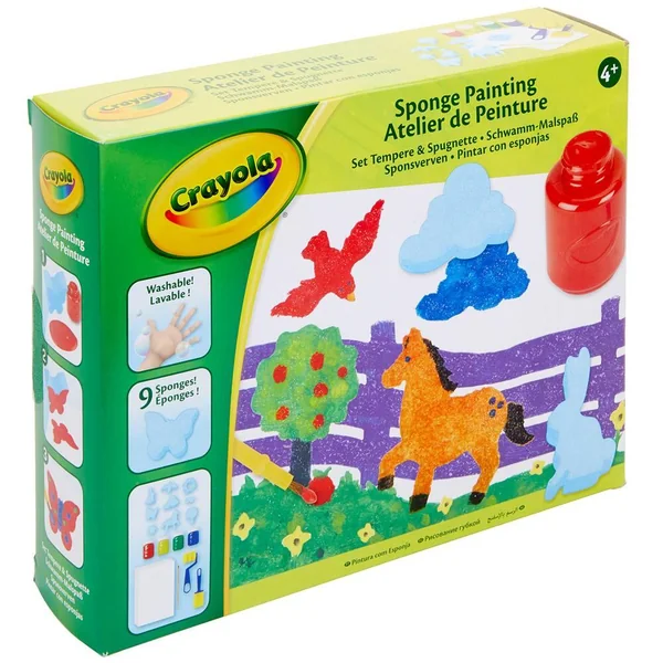 Un kit complet où l’on peut retrouver tous les outils nécessaires et adaptés aux enfants pour se familiariser avec le dessin et la peinture. Le rouleau et le pinceau en mousse leur permettent de former un décor et les éponges en forme d’animaux de créer des scènes. Le pinceau à poils est idéal pour ajouter des détails. Les 4 couleurs fournies, rouge jaune vert et bleu, permettent une créativité à l’infini grâce aux larges possibilités de mélange. Pour plus de confort, la peinture Crayola est parfaitement lavable. Contenu : 15 Feuilles blanches, 1 rouleau en mousse, 1 pinceau en mousse, 1 pinceau à poils, 8 éponges à forme, 4 bouteilles de peinture de 59 ml.