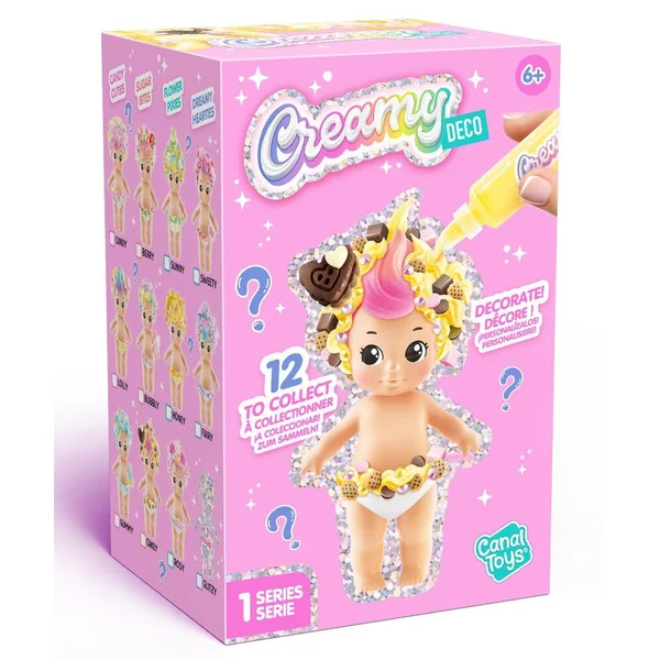Libère ta créativité avec les bébés à décorer Creamy Déco ! Décore-les avec la crème et les décorations incluses ! Collectionne-les tous !