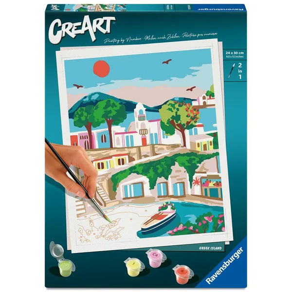 Profitez d’un moment de détente et de relaxation avec la peinture par numéros ! C’est facile, beau et agréable de réaliser soi-même son chef d’œuvre ! Parmi les nombreux visuels grands formats adulte à peindre et à accrocher, ce visuel vous transporte en vacances en Grèce et saura ravir les passionnés et compléter leurs collections ! Fabriqué en Allemagne. A partir de 12 ans. Ce produit est composé de matériaux issus de forêts bien gérées certifiées FSC®, de matériaux recyclés et de matériaux issus d’autres sources contrôlées (FSC-C111262).