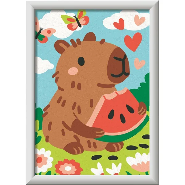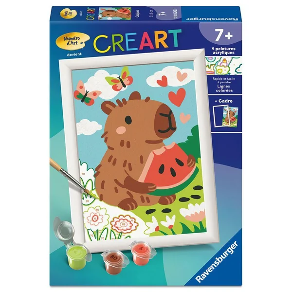 C’est facile, beau et amusant de peindre par numéro grâce aux lignes colorées pré-peintes ! Parmi les visuels petits formats à peindre et à accrocher, Cet adorable Capybara saura ravir les enfants et compléter leurs collections. A partir de 7 ans. Ce produit est composé de matériaux issus de forêts bien gérées certifiées FSC®, de matériaux recyclés et de matériaux issus d’autres sources contrôlées (FSC-C111262).