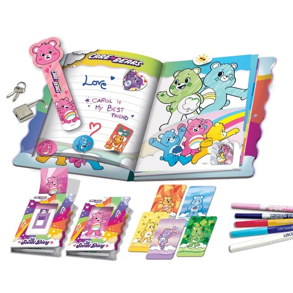Le journal intime des Bisounours est parfait pour conserver vos créations et vos secrets grâce au précieux cadenas inclus ! À l’intérieur, des feutres magiques fluorescents ou parfumés ou qui changent de couleurs.