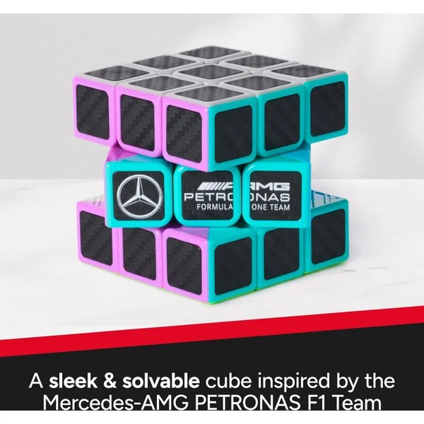 Ce cube Rubik 3×3 unique, créé en collaboration avec l’équipe Mercedes-AMG PETRONAS Formula One, présente sur chaque face une élégante impression en fibre de carbone inspirée de l’équipe Mercedes-AMG PETRONAS F1.