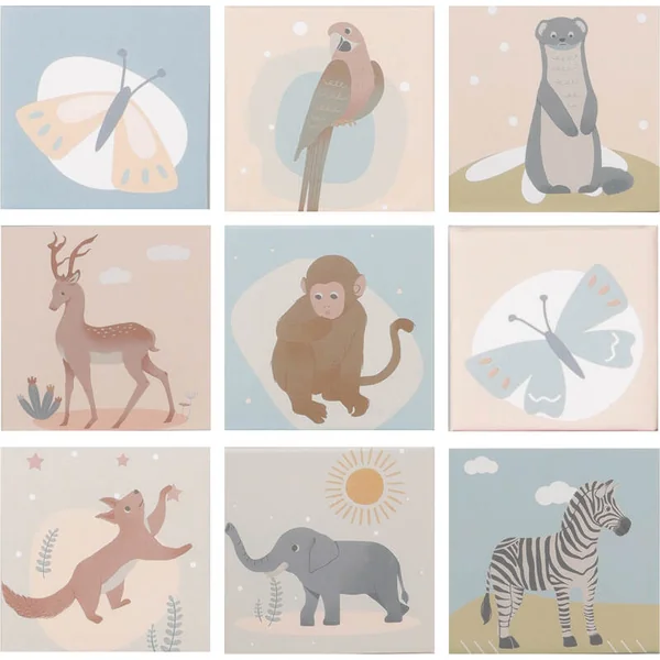 • Illustrations d’animaux (zèbre, éléphant, singe, perroquet, papillon, etc.) favorisant la découverte de la nature