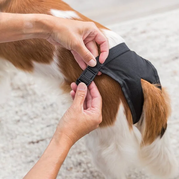 Ils ont une ceinture réglable en continu. Ils sont élastiques et donc tiennent bien. Pour les chiennes avec un tour de taille
