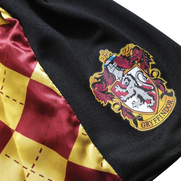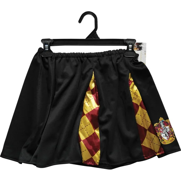 Une jupe noire avec blason et imprimé tartan dans le revers aux couleurs de Gryffondor..