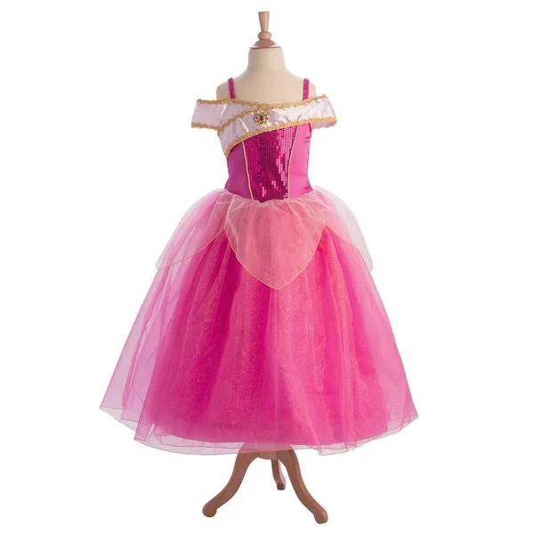 Déguisement de princesse robe rose fuchsia. Contient : 1 robe et 1 diadème en plastique. Le modèle est destiné aux enfants de 8-10 ans. Stature : 138 cm. Tour de poitrine : 70 cm. Tour de taille : 58 cm. Le costume est livré sur cintre dans une housse en organza assortie à la couleur de la robe, dimensions 42 x 5 x 110 cm. Robe : 100 % polyester, lavable en machine à 30° en cycle délicat. Chaussures non fournies.