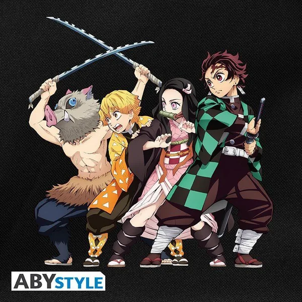 Préparez vos affaires essentielles avant votre prochain voyage de chasse au démon avec ce sac à dos de Demon Slayer représentant Tanjiro, Nezuko, Zenitsu et Inosuke par ABYstyle.