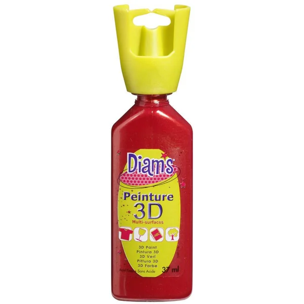 La peinture 3D DIAM’S permet de décorer tous supports : textile, bois, verre, porcelaine, argile, papier, plastique… Son tube pratique et transparent, sa texture épaisse et ses couleurs hautement pigmentées permettent d’obtenir un effet 3D superbe ! Le + : sur textile, la tenue est impeccable après lavage et sans fixation au fer !