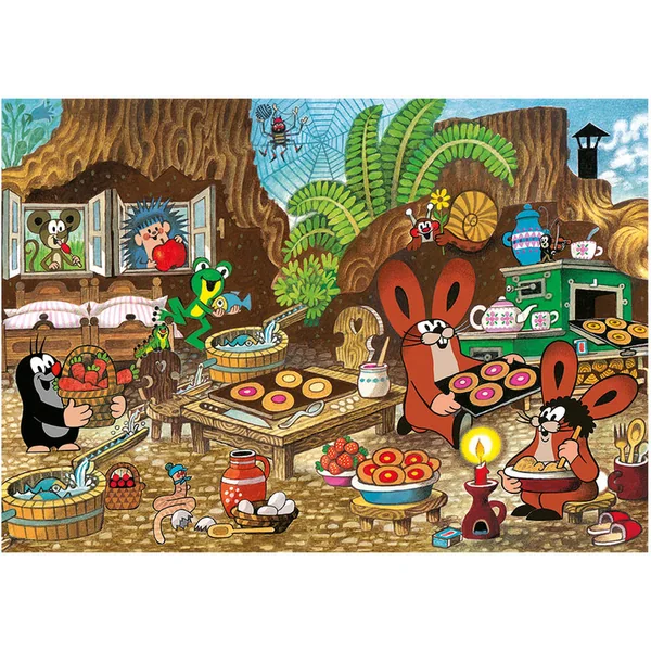 Le petit mole qui prépare des friandises avec ses amis dans la cuisine est le thème d’un puzzle que les enfants peuvent assembler à partir de 100 grandes pièces et éventuellement accrocher au mur.