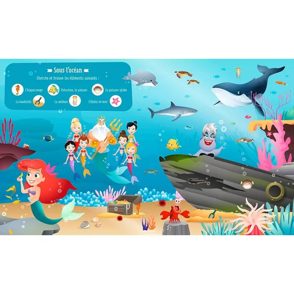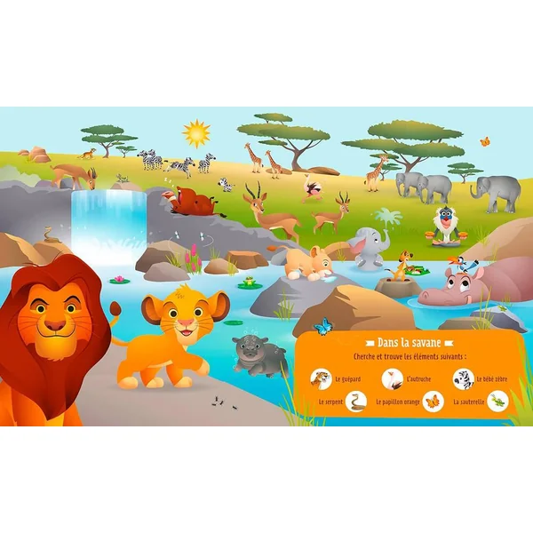 Un très grand album tout-carton pour chercher et trouver ses héros préférés ! 9 scènes colorées pour s’amuser avec tous les personnages emblématiques des films Disney ; Des pages pensées pour avoir un niveau de difficulté adapté aux enfants de 2 ans ; Des illustrations avec, sur chaque scène, un encadré avec une miniature de l’élément caché pour guider l’enfant dans sa recherche ; Plus de 50 éléments à retrouver ! Dès 2 ans.