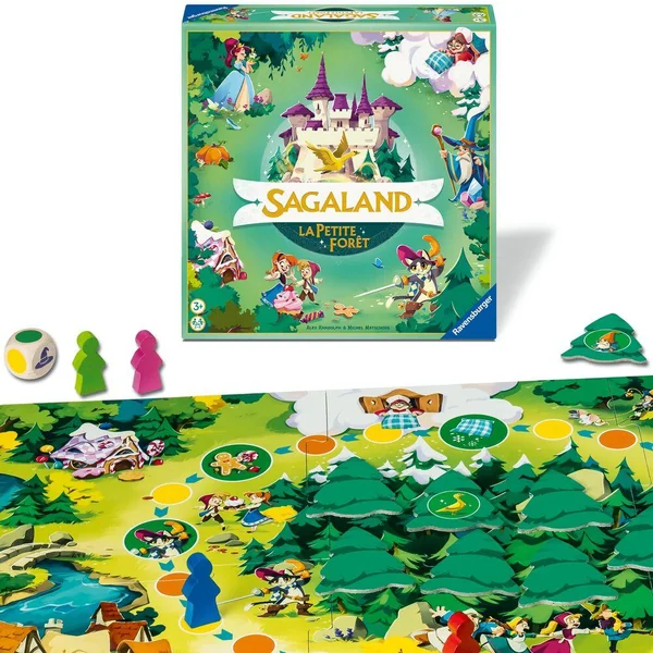 La Petite Forêt de Sagaland vous emmène en voyage à travers un pays fantastique. Partez ensemble à la recherche d’objets et de personnages cachés dans le royaume. Essayez de les retrouver derrière les arbres de la forêt ! La Petite Forêt de Sagaland est un jeu de société pour toute la famille. Vous devrez faire preuve d’une bonne mémoire et d’un peu de chance pour remporter la partie.