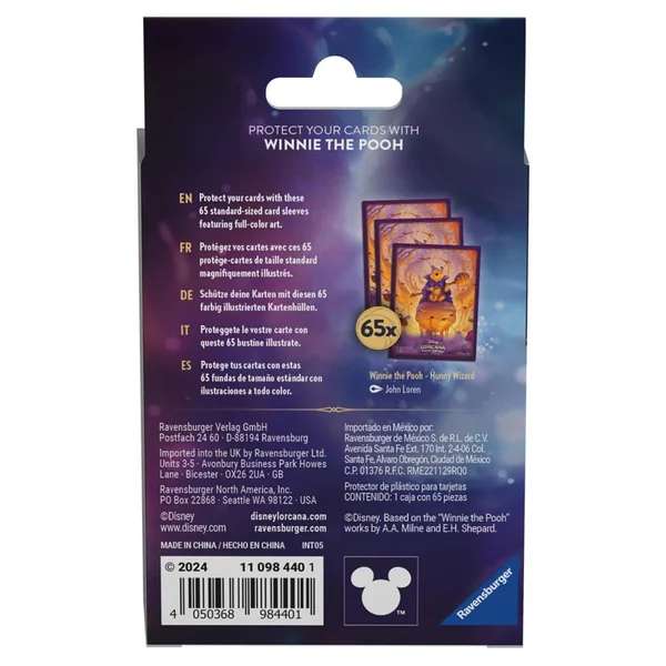 Protégez vos cartes de l’usure en jouant avec les protège-cartes ornés de l’illustration originale de Winnie l’Ourson tirée de Disney Lorcana : L’Ascension des Floodborn.