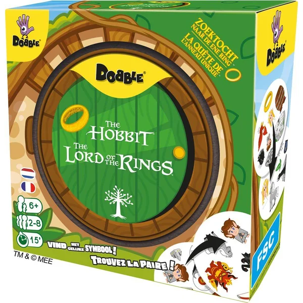 Plongez dans l’univers épique de la Terre du Milieu avec Dobble Le Seigneur des Anneaux. Le principe est simple : repérez le seul symbole identique entre deux cartes et soyez le plus rapide à marquer des points ! Découvrez les personnages légendaires de l’œuvre de J.R.R. Tolkien, issus des films à succès : Hobbits, Elfes, Nains, et bien sûr, l’Œil de Sauron, vous attendent dans ce jeu trépidant.