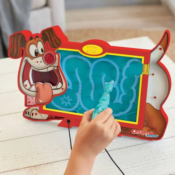 Docteur Maboul Vétérinaire : jeu de société où le but est de retirer les pièces anatomiques du corps du chien sans le faire hurler pour gagner de l’argent. Le joueur qui récupère le plus d’argent gagne la partie. Principe du jeu : chacun à leur tour les joueurs piochent une carte et retire la pièce indiquée sans toucher les rebords métalliques. Si la sonnerie se déclenche et la truffe du chien s’allume, c’est perdu, mais si tu y arrives, tu gagnes le montant indiqué sur la carte ! Le joueur qui a gagné le plus d’argent gagne la partie !1 joueur ou plus. Temps de la partie : environ 10-15 minutes. Valeur éducative : se concentrer, développer la dextérité. Vous aimez les jeux de société et partager un moment en famille ou entre amis ? 2 joueurs.