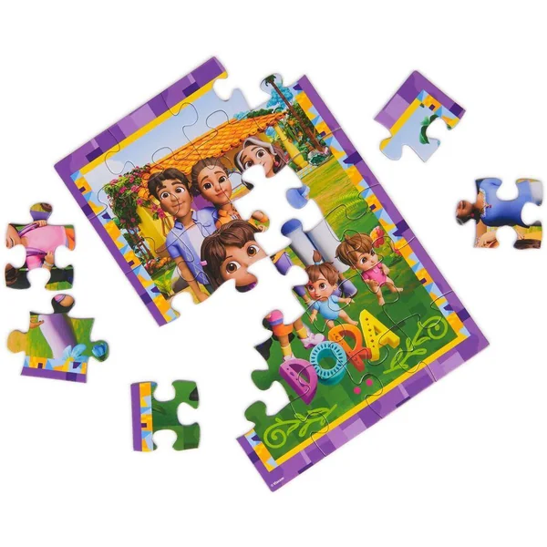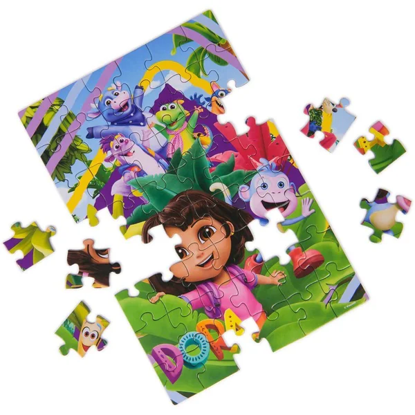 72 pièces pour réaliser 3 puzzles de 24 pièces avec Dora et tous ses amis.