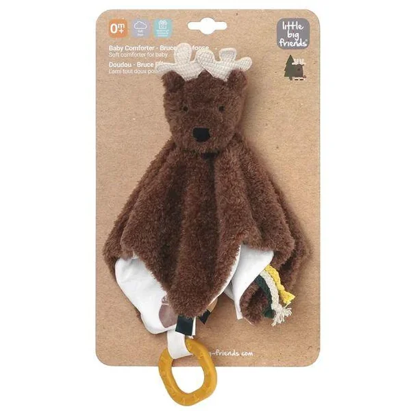 Le doudou Bruce l’Élan est parfait pour accompagner bébé dès ses premiers mois. Conçu avec des matières ultra-douces – un tissu bouclé moelleux et un imprimé forêt au toucher soyeux – il apporte douceur et réconfort. Avec ses différentes activités – 3 rubans, 3 cordons et 1 anneau de dentition – ce doudou stimule la curiosité et favorise le développement de la motricité fine. Sa forme plate, facile à manipuler par les petites mains, en fait un allié parfait pour les câlins, les jeux et les promenades en poussette. Le design adorable du doudou Bruce l’élan en fait un cadeau de naissance idéal, alliant douceur et amusement pour accompagner bébé dans ses plus beaux moments.