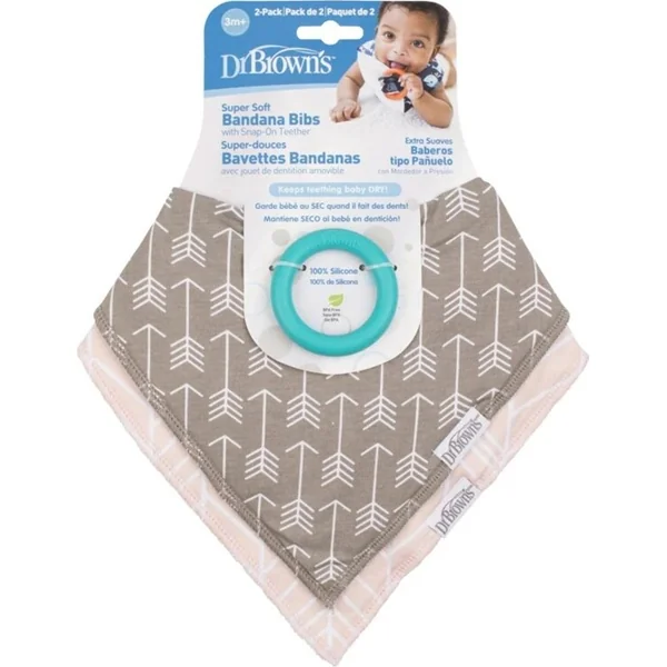 Dr.Browns Bavoir avec anneau de dentition 2pcs empreinte beige, rose