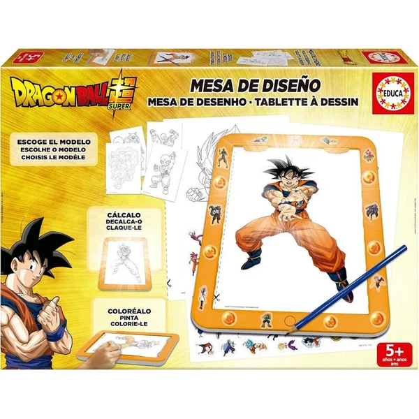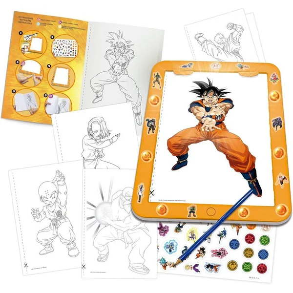 Crée tes propres modèles Dragon Ball avec la table lumineuse, colorie-les et décore-les avec les autocollants ! Contient : 1 table lumineuse, 1 livret de 32 pages avec des modèles, des dessins et des instructions, 1 crayon, 1 feuille d’autocollants. 3 piles AAA sont nécessaires (non incluses). A partir de 5 ans.