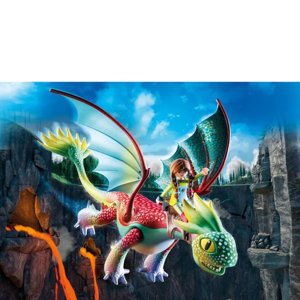 Jeu de construction. 1 personnage et des accessoires. Les ailes et les pattes du dragon sont amovibles.