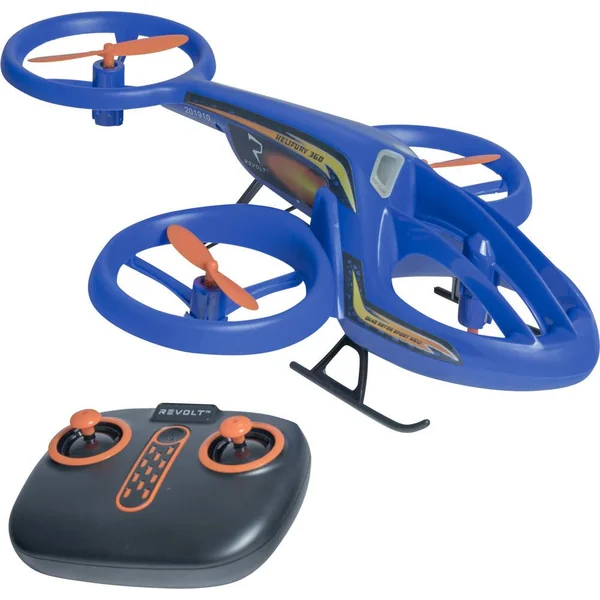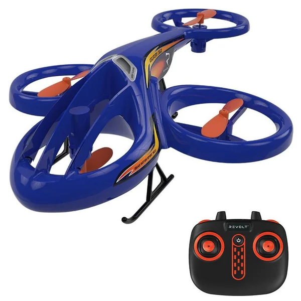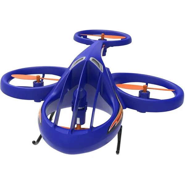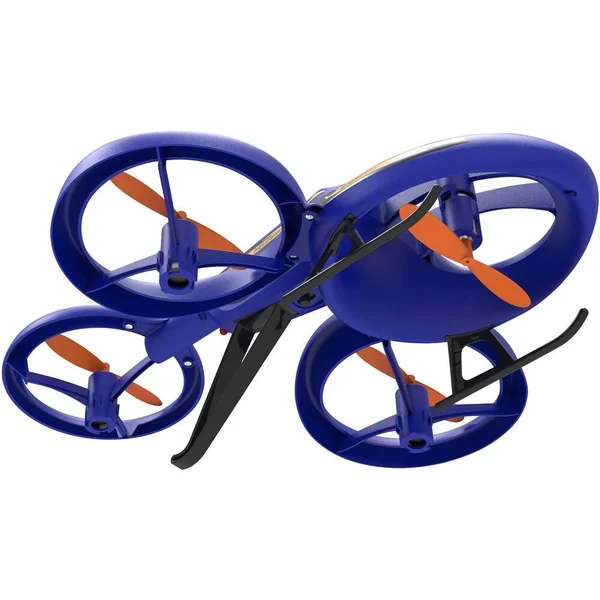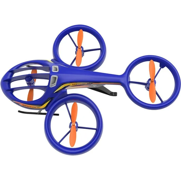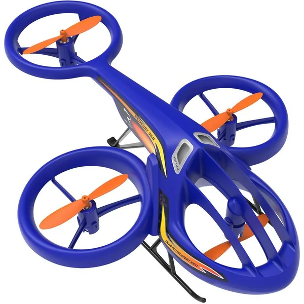 Un hybride ingénieux et futuriste entre hélicoptère et drone ! Radiocommandé 2.4GHz. Toutes fonctions : vol marche avant, arrière, tourne à gauche et à droite. Effectue 12 cascades préprogrammées, y compris des retournements à 360 degrés, des tonneaux et des modèles de vol. Facile à piloter avec décollage-atterrissage à un seul bouton, vol stationnaire automatique. Hélices protégées pour éviter les dommages. Portée maximale de 25 mètres. Vitesse maximale : 20 km/h. 1 batterie rechargeable 3,7 V LiPo 500 mAh et un câble USB pour charger inclus. 4 piles LR6 non fournies pour la radiocommande. Notice incluse. Convient à une utilisation en intérieur uniquement. Caractéristiques du drone. Classe : 0. Poids du drone avec batterie : 61 g.