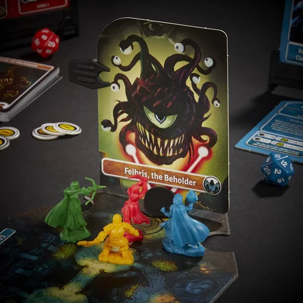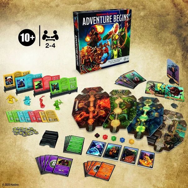 Le jeu coopératif Dungeons & Dragons Adventure Begins permet de découvrir rapidement le monde de D&D. Dans ce jeu conçu pour les débutants, les joueurs choisissent leurs personnages et leur aventure à mesure qu’ils traversent les terres de Neverwinter. Ils devront collaborer entre eux pour affronter les monstres et vaincre le Boss qui terrorise le royaume. Le rôle du maître de donjon passe de joueur en joueur à chaque tour, ainsi, chacun prendra part à la narration de l’histoire. Le jeu inclut 4 mini figurines qui correspondent aux héros décrits dans le jeu. Les joueurs peuvent choisir et personnaliser leur héros et leur équipement, et combattre des monstres de D&D en vivant à chaque fois une nouvelle aventure.