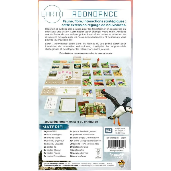 Earth: Abundance est une extension qui vous permet d’augmenter encore le riche gameplay du multiprimé Earth : Ajouter un 6ème joueur, une nouvelle ressource, de nouvelles sources d’interactions et l’opportunité de « nettoyer » votre main de cartes.