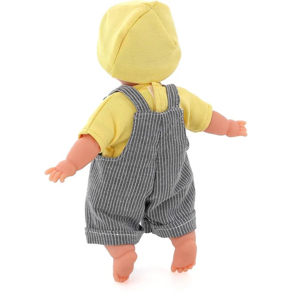 Bébé 25 cm Ecolo doll avec l’habillage « HARRY ». Le corps et les vêtements des bébés Ecolo doll sont fabriqués en Europe avec du coton cultivé sans pesticides. Les bébés Ecolo doll (25 cm) sont livrés avec un sac en coton biologique dans une boîte en carton recyclé. Le sac peut être utilisé comme couverture, comme rangement ou pour laver le bébé en machine (à basse température). Tête et membres en vinyle souple parfumé à la vanille, corps souple en coton biologique. Ce modèle porte une salopette avec un tee-shirt de couleur jaune. A partir de 10 mois.