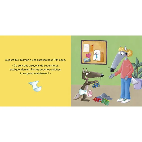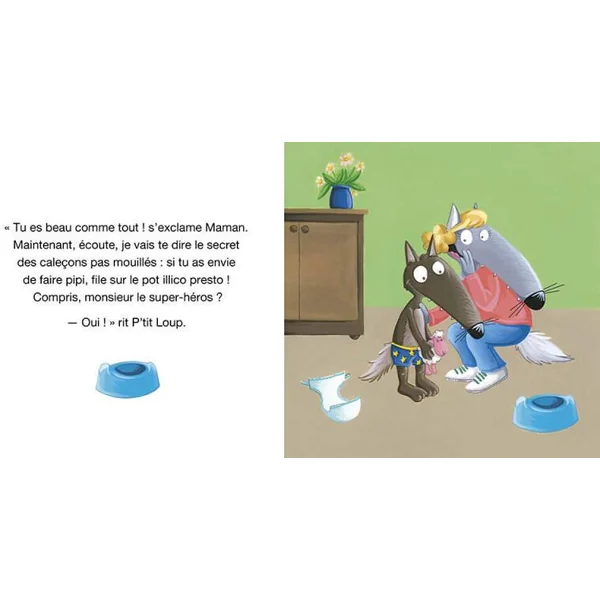 Pour cela, Maman a une astuce : si tu as envie de faire pipi, file sur le pot, illico presto ! Et pour motiver P’tit Loup, elle a aussi acheté des caleçons de super-.