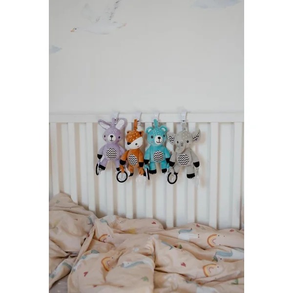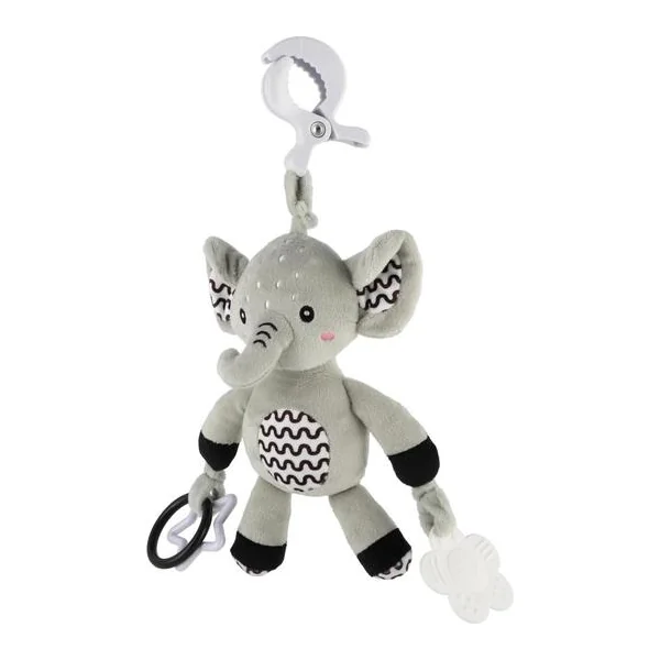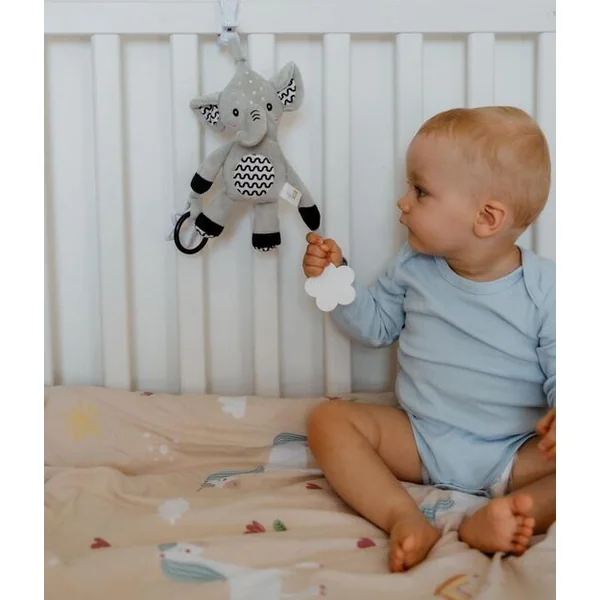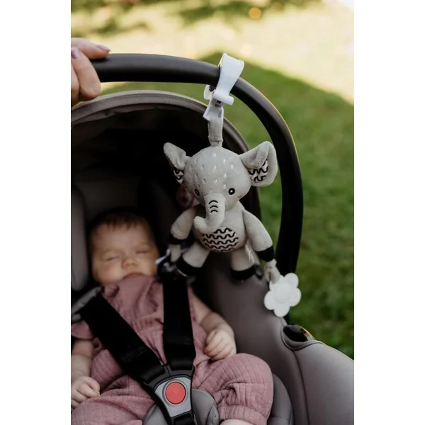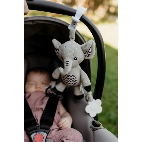 Le mignon éléphant en peluche est le jouet idéal pour les bébés dès la naissance. Grâce à son clip de suspension pratique, vous pouvez facilement l’attacher à la poussette, au lit, au siège auto ou au tapis d’éveil. Le bébé aura toujours son doux compagnon à ses côtés – à la maison comme en voyage.