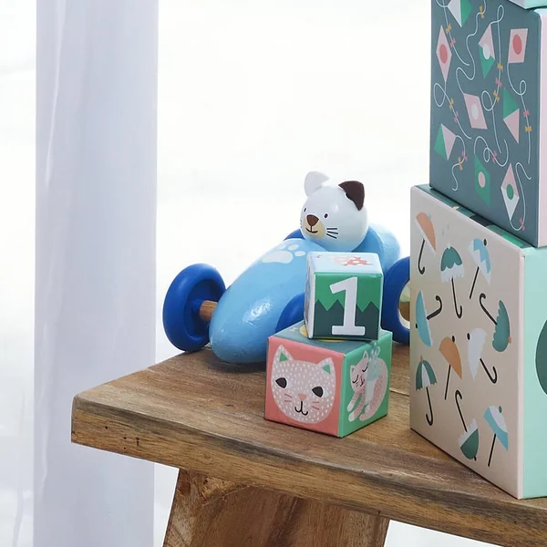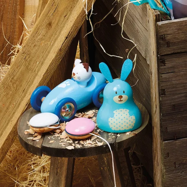 Décliné en boite à musique, en hochet et en parapluie, cette voiture en bois laqué fait partie d’une collection d’animaux imaginés et fabriqués dans notre atelier du Jura en France. Une bande de copains composée de René le pingouin, Marcel l’ours, Raoul le lapin, Alice le Koala, Mariette la chatte et enfin Lucien le chien. Pour lequel allez-vous craquer ? Fabriqué en France, ce jouet est laqué suivant un procédé unique d’immersion dans des bains de laque qui fait la renommée de notre atelier de fabrication du Jura.