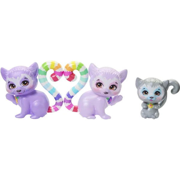 3 lémuriens, de moyenne et petite taille sont réunis autour d’une ravissante poupée. Celle-ci affichent un air de ressemblance avec les 3 amis.
