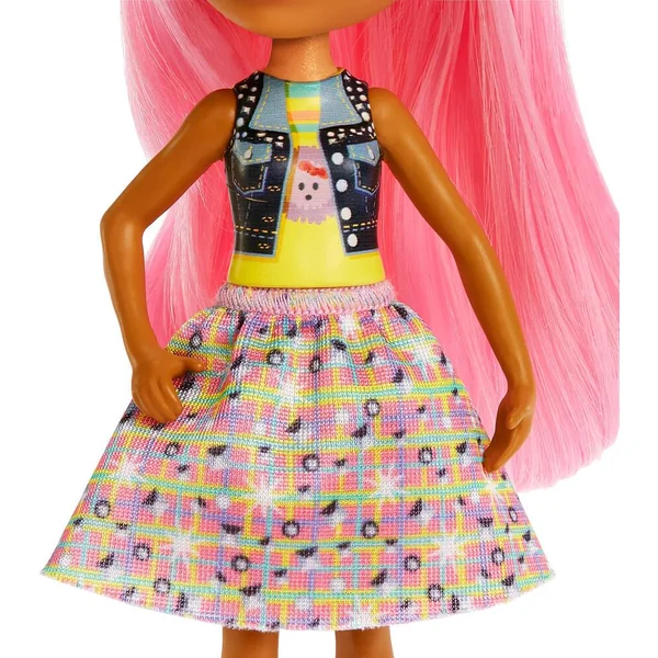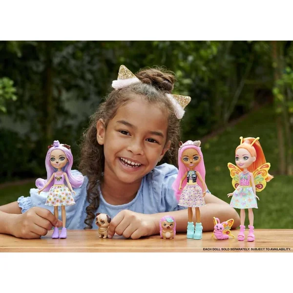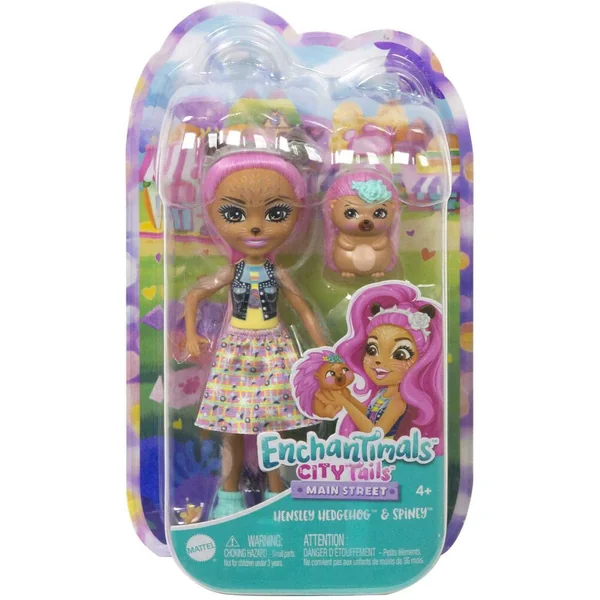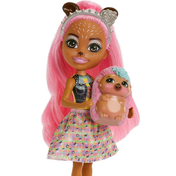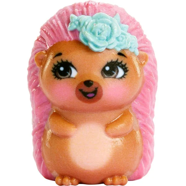 Le rose fuchsia colore les cheveux de la poupée de 15 cm ainsi que les épines du petit hérisson. La poupée et son animal sont des amis inséparables.