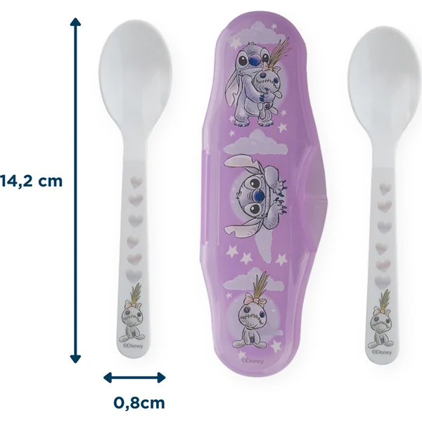 Ensemble de 2 cuillères avec étui Lilo & Stitch : L’ensemble de 2 cuillères Lilo & Stitch est idéal pour accompagner votre enfant lors de ses voyages.