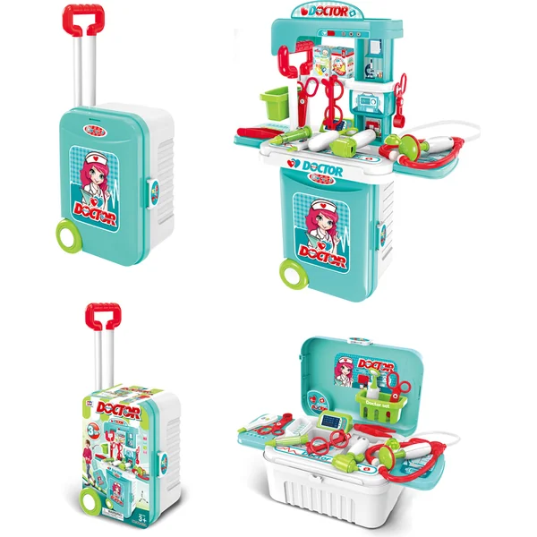 Grand set de docteur 3 en 1 dans une valise de voyage pratique sur roulettes pour les petits médecins. La valise peut facilement être transformée en cabinet médical.