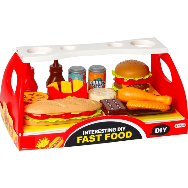 Ce set de fast-food ludique apportera beaucoup de plaisir aux enfants lors de la préparation de leurs plats préférés, tels que des hamburgers, des hot-dogs et d’autres délices.