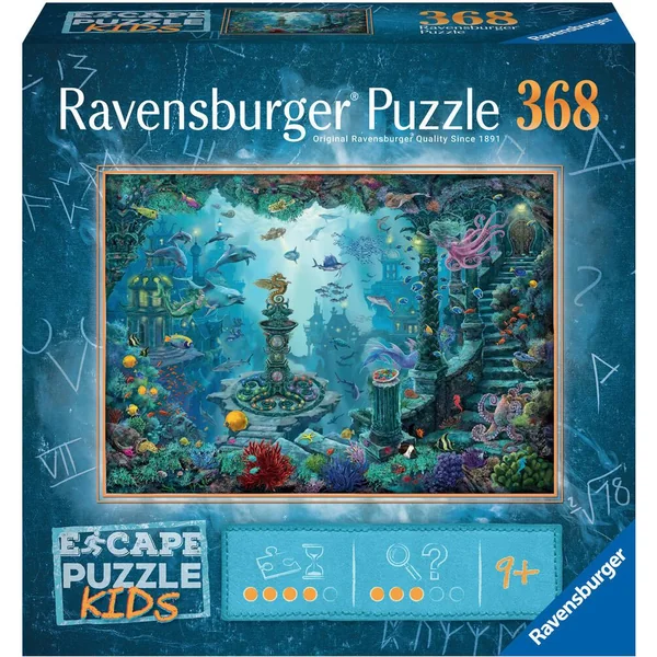 Découvrez la première offre de puzzles inspirée des jeux d’évasion, adaptée aux enfants dès 9 ans ! Une fois que les 368 pièces du puzzle sont assemblées, les enfants plongent dans un univers plein de mystère et d’énigmes à résoudre. En observant attentivement l’illustration, ils pourront débusquer les indices et mettre à l’épreuve leurs sens de la déduction. Au fil des énigmes, les enfants récolteront des pièces du puzzle, qui leur permettront de reconstituer la solution finale, comme clef de sortie de ce grand jeu d’évasion. La boîte contient un puzzle de 368 pièces, un guide d’utilisation et une enveloppe renfermant la solution. Si vous êtes bloqués, vous pouvez vous rendre sur notre site d’aide en ligne : https://escape-puzzle-support.com/fr/kids-puzzle-fr/.