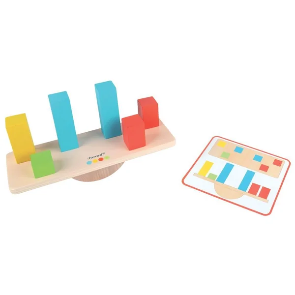 Compare les poids des 16 blocs inclus et place-les sur la balance magnétique pour reproduire les dessins des 8 modèles fournis.