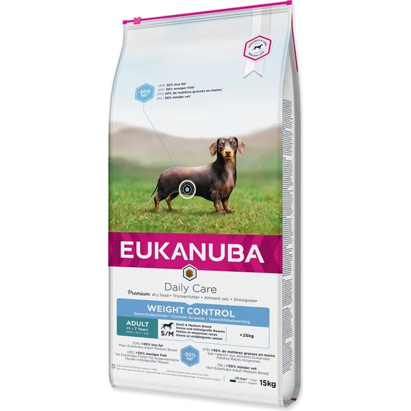 Aliment complet et équilibré Convient aux chiens adultes de petites et moyennes races âgés de 1 à 7 ans pesant jusqu’à 25 kg, qui sont en surpoids ou moins actifs. Avec une riche teneur en viande de poulet. Cet aliment Eukanuba contient une quantité réduite de matières grasses et fournit la dose quotidienne optimale de protéines, de glucides, de vitamines et de minéraux essentiels pour la santé et le bien-être de votre chien.