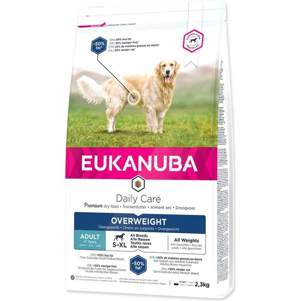 Contient les vitamines et minéraux nécessaires dont votre chien a besoin. Un poids correct est un facteur clé pour la santé et le bien-être du chien. Cependant, le nombre de chiens en surpoids augmente. Le surpoids augmente le risque de maladies telles que le diabète, les maladies cardiaques et les problèmes articulaires. La nutrition joue un rôle clé dans le contrôle du poids. C’est pourquoi Eukanuba a développé l’aliment Eukanuba Excess Weight, qui aide les chiens adultes à atteindre un corps mince et à profiter d’une interaction active avec leurs maîtres. Tout le monde connaît l’effet yo-yo des régimes. Les gens changent leur alimentation pour perdre du poids. Une fois qu’ils atteignent leur poids idéal, ils retournent à leurs anciennes habitudes alimentaires et reprennent du poids. Pour maintenir un poids santé, vous devez vous en tenir à vos habitudes efficaces. L’aliment Daily Care pour chiens en surpoids, après castration, suit le même principe. Les chiens sont susceptibles de prendre du poids après la castration en raison des changements hormonaux. Suivez nos recommandations d’alimentation, et aidez ainsi votre chien à perdre du poids d’abord, puis faites de l’exercice avec lui et donnez-lui chaque jour, dans le cadre de son alimentation, l’aliment Daily Care pour chiens en surpoids, après castration, pour maintenir un poids optimal.