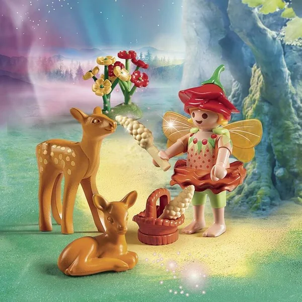 Dans la forêt enchantée, il reste tant de choses importantes à faire. Les courageuses petites fées sont aidées par leurs amis. « Regardez, mes petits faons ! Je viens vous amener à manger ! », crie la fée à ses amis. Les faons accourent immédiatement en sautillant gaiement. La boîte contient un personnage, deux faons et des accessoires. ATTENTION ! Ne convient pas aux enfants de moins de 3 ans : risque d’asphyxie à cause de petits éléments !
