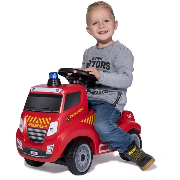 Le porteur Ferbedo camion de pompier. Volant avec klaxon. Un gyrophare bleu avec sirène.