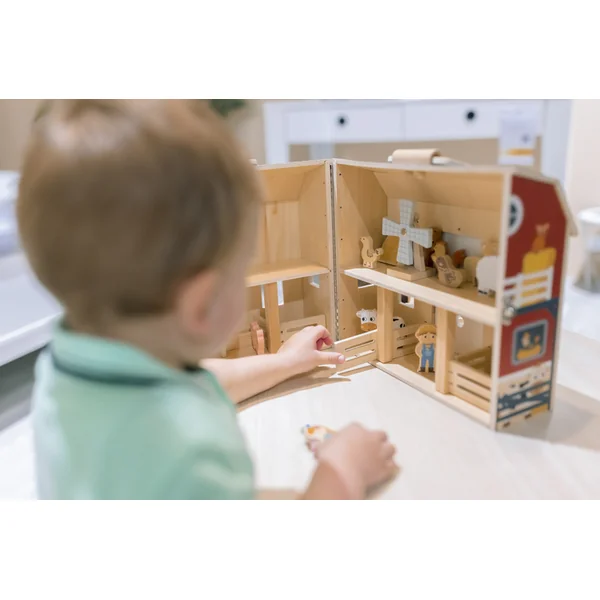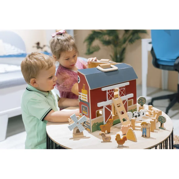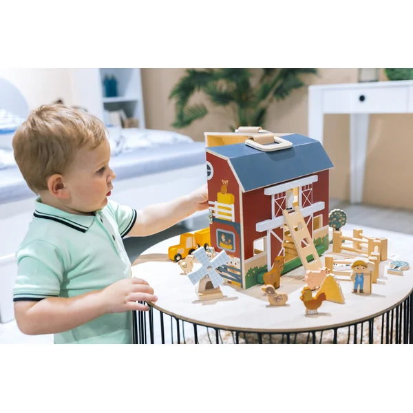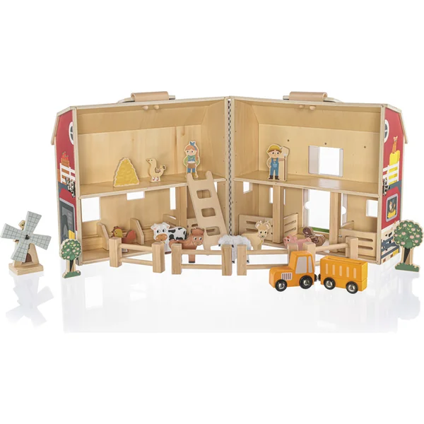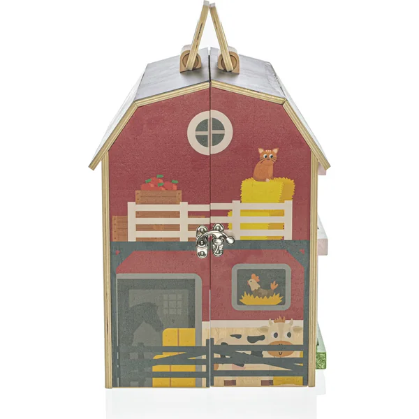 La ferme portable en bois avec activités est le jouet idéal pour les petits fermiers aventuriers. Grâce à sa poignée pratique pour le transport et son verrou sécurisé, cette ferme est facilement transportable et convient pour jouer n’importe où. Les portes ouvrantes ajoutent une dimension supplémentaire au jeu et permettent aux enfants de découvrir comment les animaux profitent de la vie à la ferme.