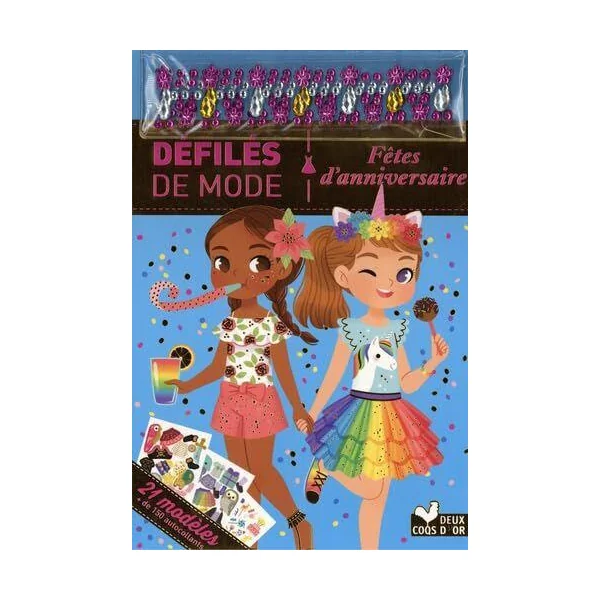 Organise un superbe défilé pour tes héroïnes d’un jour ! Grâce aux 7 planches d’autocollants pour les tenues (certains sont pailletés et métallisés) et 1 planche d’autocollants pour les accessoires, habille tes 21 silhouettes. Tu peux détacher proprement tes feuilles, choisir un haut et un bas assortis, compléter la tenue de ton modèle, puis décorer ta création grâce aux strass fournis !