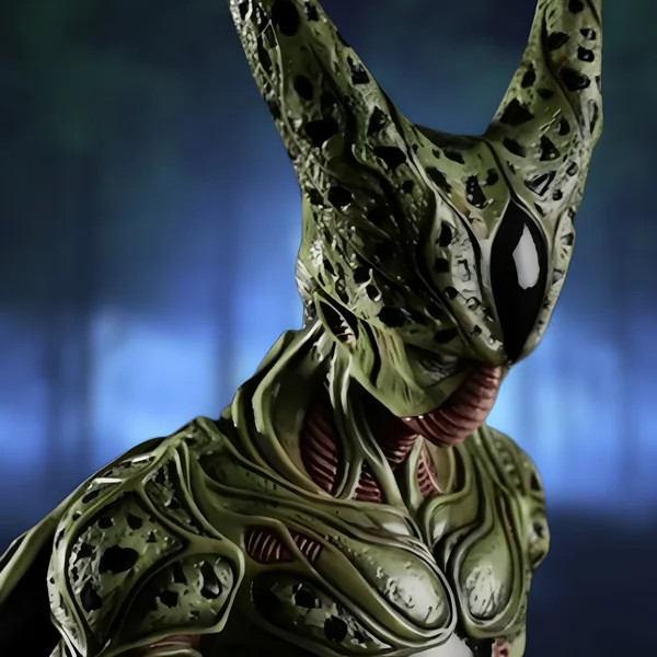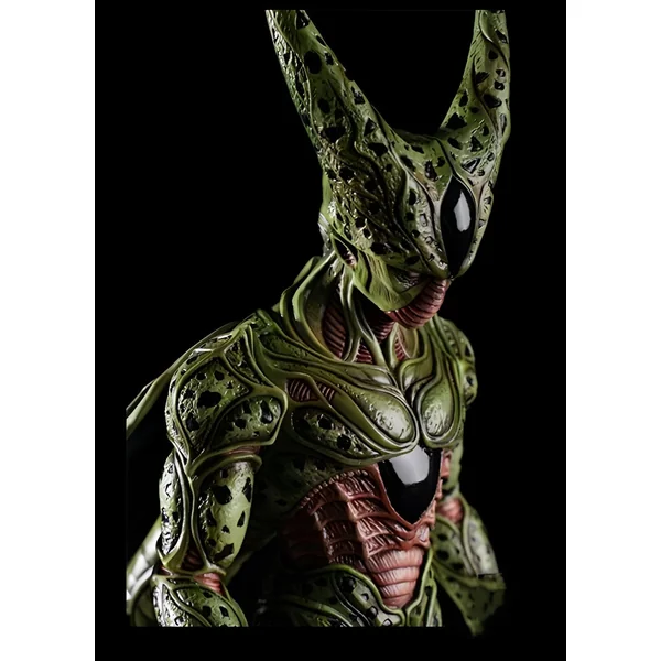 La posture de Cell, prêt à bondir, suggère son agilité et sa puissance brute. Son regard perçant et ses traits anguleux sont le reflet de sa détermination à atteindre son objectif final. Les finitions de la figurine accentuent la texture biologique du cyborg, offrant une sensation presque vivante. Cette représentation, très fidèle à l’œuvre originale, plaira aux fans qui ont suivi son parcours de près. Cell Imparfait, un être en constante évolution, est ici figé dans le temps, prêt à en découdre à nouveau.
