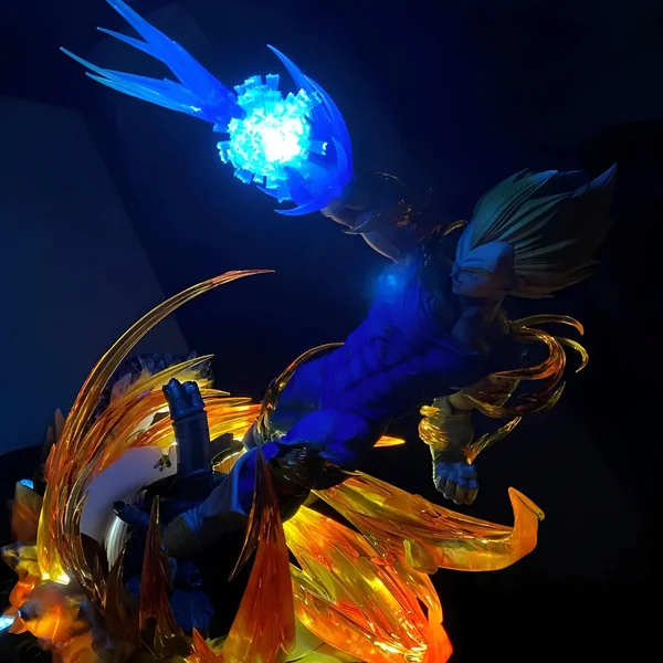 La base semble vibrer de l’énergie dégagée par Vegeta, comme si le sol lui-même réagissait à sa puissance. Les couleurs et les formes utilisées dans la conception du socle contrastent avec la figure de Vegeta, mettant en valeur son allure et sa détermination. Cet ensemble harmonieux crée une scène cohérente et impactante, transportant l’observateur au cœur de l’action. Le socle est la fondation sur laquelle repose la légende de Vegeta Conquérant, un rappel constant de sa force et de sa soif de conquête.
