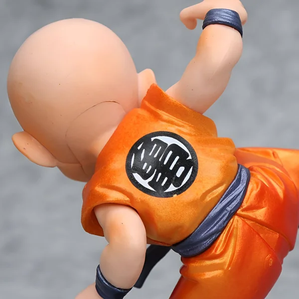En observant de près cette pièce de collection, on retrouve le véritable Krilin, celui qui n’hésite jamais à se jeter dans la mêlée pour protéger ses amis. Les détails de ses poignets, avec ses bracelets bleus caractéristiques, et le soin apporté à sa tenue témoignent d’une volonté de rendre un hommage fidèle au personnage. La précision de la reproduction, jusqu’aux petites taches sur son crâne chauve, fait de cette figurine un véritable objet de collection qui séduira autant les fans de longue date que les nouveaux venus dans l’univers de Dragon Ball. C’est un véritable hommage à l’un des personnages les plus appréciés de la série.