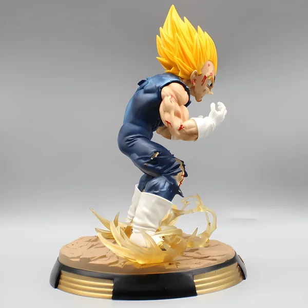 Cette figurine de Majin Vegeta est plus qu’un simple objet de collection ; c’est une interprétation palpable d’un moment décisif dans l’histoire de Dragon Ball Z. Les concepteurs ont su saisir l’énergie brutale émanant du prince Saiyan au moment de sa transformation. Son regard empli de colère, les muscles saillants sous la tension du combat, ainsi que le symbole de Majin sur son front, sont autant de détails qui témoignent d’un travail soigné. Les déchirures de son armure, les égratignures et le sang sur son corps sont également mis en avant, témoignant de sa lutte intérieure entre sa fierté Saiyan et le pouvoir qu’il a accepté de recevoir. Le socle, conçu pour évoquer le terrain de combat, ajoute une dimension dynamique à l’ensemble.