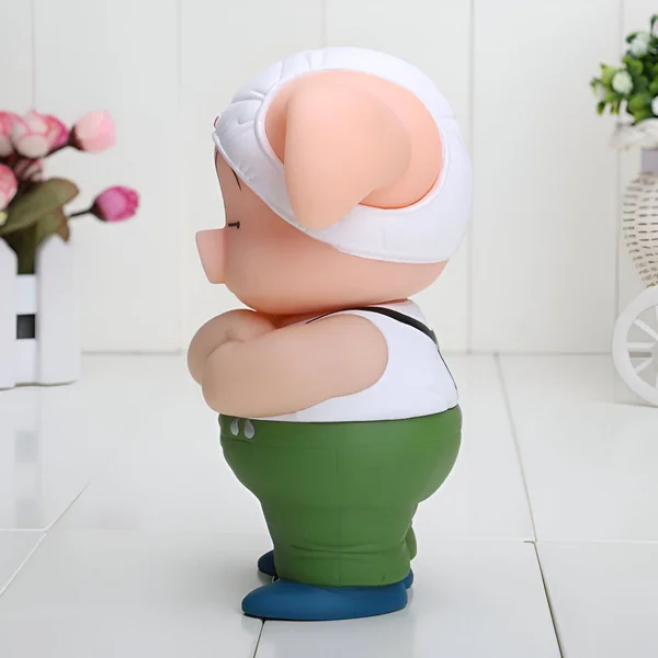 Cette figurine d’Oolong est une parfaite réplique de son apparence dans la série Dragon Ball. Son design reprend ses traits distinctifs avec précision : de son groin rose, en passant par ses oreilles tombantes, jusqu’à sa tenue vestimentaire typique. Son petit bonnet blanc, légèrement de travers, et son air grognon avec les bras croisés ajoutent un aspect adorable et comique à la figurine. La palette de couleurs employée respecte fidèlement celle de l’œuvre originale, vous assurant un objet qui rappelle instantanément le personnage que l’on aime tant. Les détails sont soignés et offrent un visuel saisissant, faisant de cette figurine une représentation vivante du métamorphe.