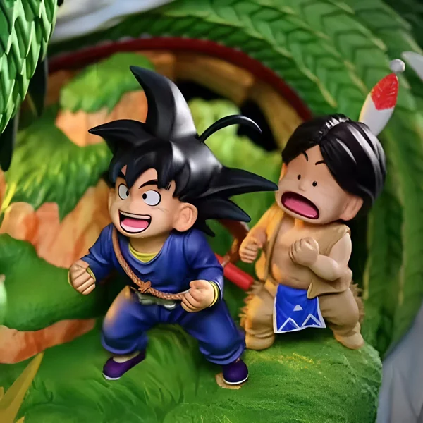 La présence de Goku et Bulma, tous deux enfants, ajoute une dimension narrative captivante à la figurine. Ces figures miniatures, mais riches en détails, rappellent les débuts de l’aventure Dragon Ball. Leurs expressions de surprise et d’émerveillement témoignent de leur première rencontre avec l’incroyable pouvoir de Shenron. Goku, avec son énergie caractéristique, et Bulma, pleine de curiosité, sont les témoins privilégiés d’une scène qui marquera à jamais le début d’une grande quête. Leur présence, à la base de la figurine, permet de contextualiser l’action et de faire le lien avec les origines de l’histoire.